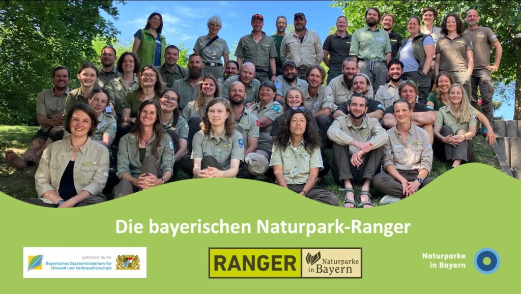 Die Geschäftsführerinnen (v.l) Beate Singhartinger (Naturpark Frankenwald), Nadine Menchen (Naturpark Fränkische Schweiz-Frankenjura), Isabel Lautenschlager (Naturpark Hirschwald) und Johanna Sieger (Naturpark Frankenhöhe) mit Heinrich Schmidt (Präsident Naturparkverband Bayern) und Julian Bruhn (Vorstandsmitglied und Qualitäts-Scout VDN) © Markus Dollacker